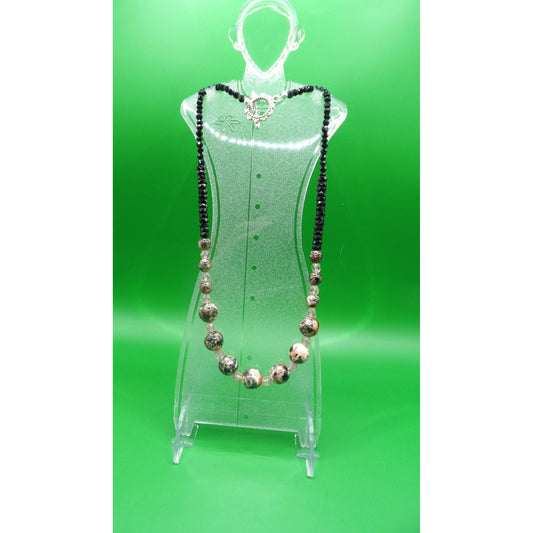 JS2 Black and Red Czech Glass Beads with Matching Earrings