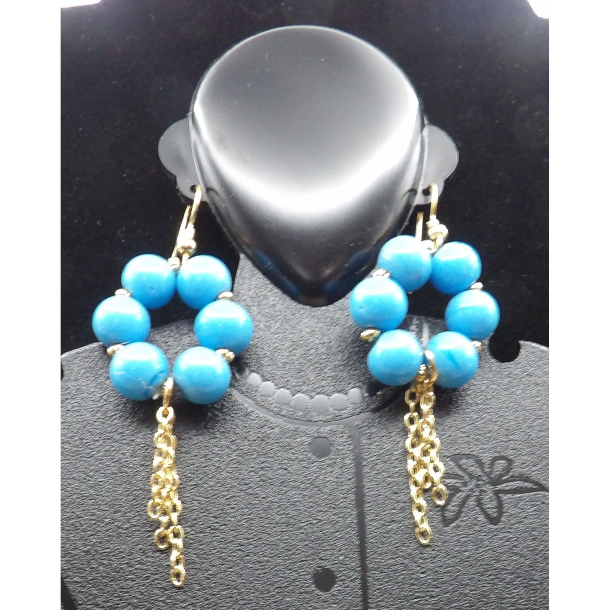 Blue "Turquoise" Glass Beads with chain Earrings