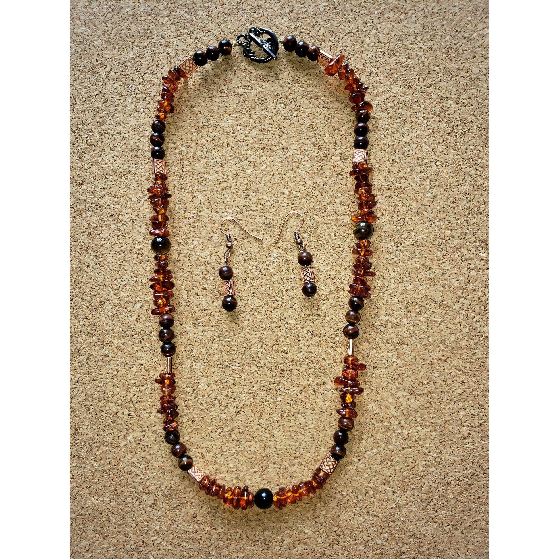 JS24 Tiger Eyes Stones with Amber Chips w/ Copper Spacers